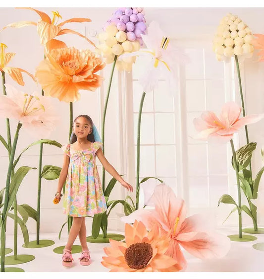 SAVE 89%Floral Border Puff Sleeve Dress