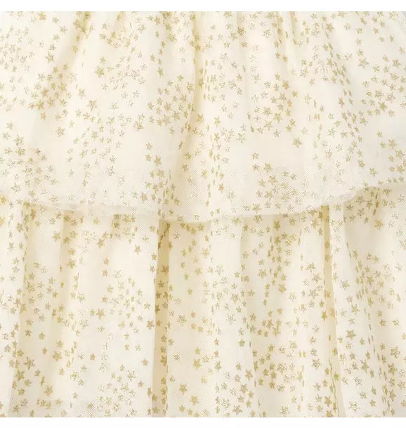 • A fashionable moment is written in the stars. Our limited-edition dress features sparkling star tulle, flutter sleeves and tiered ruffles. Made to match with their favorite American Girl Doll.