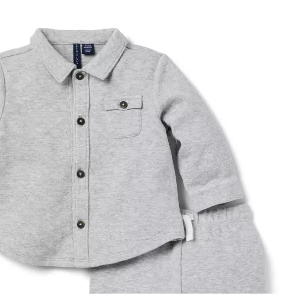 • For effortless style that's always a match, reach for this soft quilted set. With a buttoned chest pocket and tie detail, it's perfect for all of baby's cozy firsts.