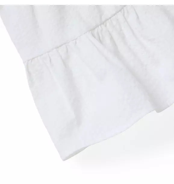 • Dress up first moments with this pure cotton seersucker dress. Designed with ruffle details and a tiered silhouette.