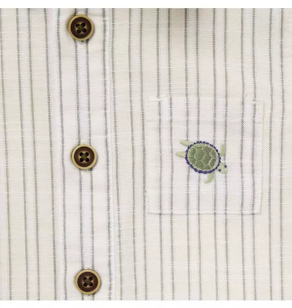 • Our romper in soft cotton slub is just right for baby's first adventures. With allover stripes, an embroidered sea turtle detail at the chest pocket and a little back pocket too.