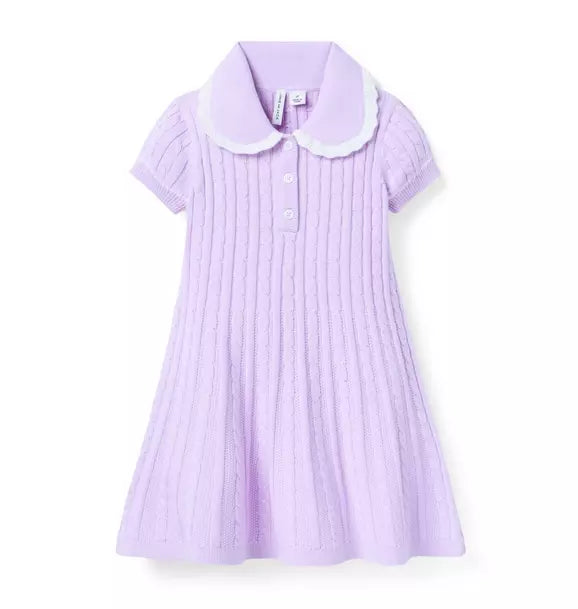 • A close-knit favorite, our sweater dress has style in every stitch—from the cable knit details to the crochet trimmed collar. Give it a twirl.