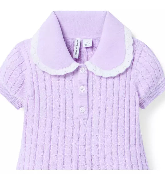 • A close-knit favorite, our sweater dress has style in every stitch—from the cable knit details to the crochet trimmed collar. Give it a twirl.