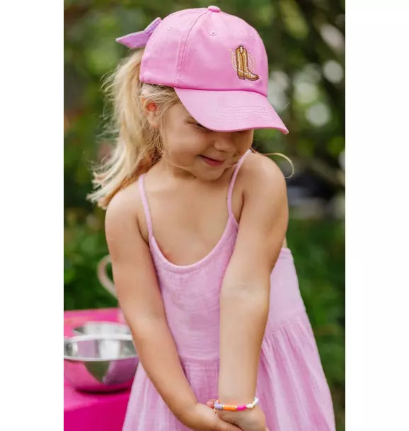 • For the little girl who’s never too far from her favorite pair of cowgirl boots, the Cowboy Boot Bow Baseball Hat offers a pretty-in-pink accessory to top off her western-inspired style. She’ll be ready to rodeo with this cute cap featuring a fun, feminine gingham seersucker bow on the back.