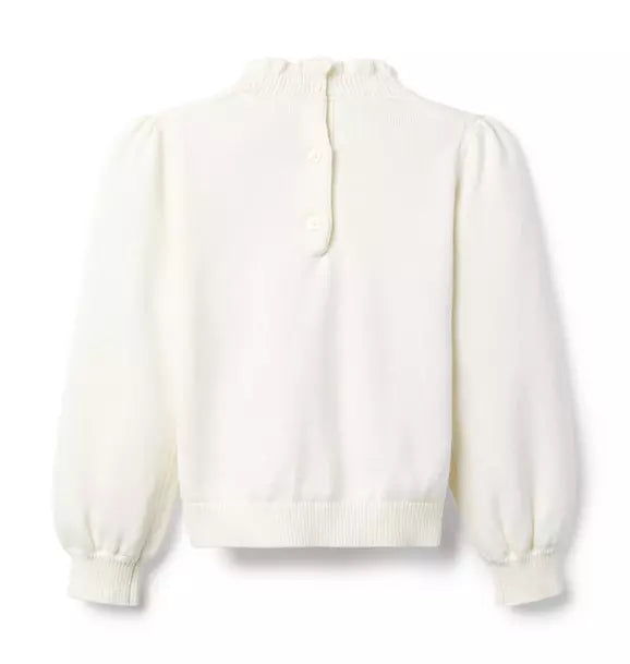 • A sweater stitched with deer friends. Soft and cozy with ribbed details and a scallop- trimmed turtleneck.
