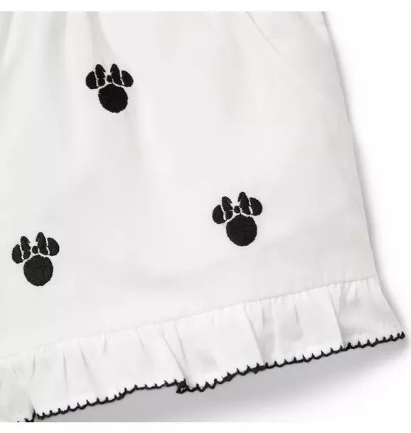 • Our Disney Minnie Mouse short is ready for adventure. In pure cotton with allover embroidery, a ruffle hem and picot trim. Plus, pockets for the little things.