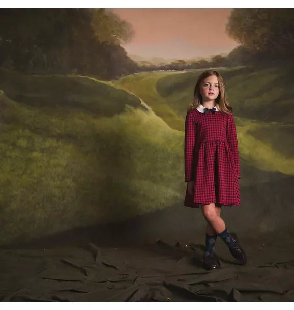 • Holiday-ready details? This gingham dress checks every box. Designed in soft jacquard with a contrast collar and a bow, of course.