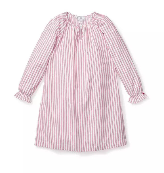 Girl's Twill Delphine Nightgown in Antique Red Ticking
