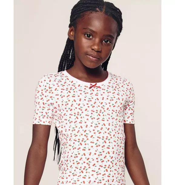 • What's sweeter than this? The new Cherry Orchard print is perfect for summer escapes. Our 100% Pima Cotton Short Sleeve Top and Short Set is designed to ensure a secure and snug fit, allowing freedom of movement for active littles while providing a stylish silhouette for warmer months. Designed to coordinate with the whole family, this set offers superior comfort, durability with serious coordinated style points. The high-quality Pima Cotton retains its softness, shape, and vibrant colors even after multiple washes, ensuring it remains a favorite in your child's wardrobe.In our luxurious sleepwear, your little one will be tucked in love and off to dreamland. Bonne nuit.**For your Child's safety, this garment should fit snugly, garment is not flame resistant**