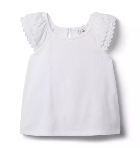 • Our soft cotton top with layered sleeves and lace trim pairs perfectly with all their sunny day favorites.