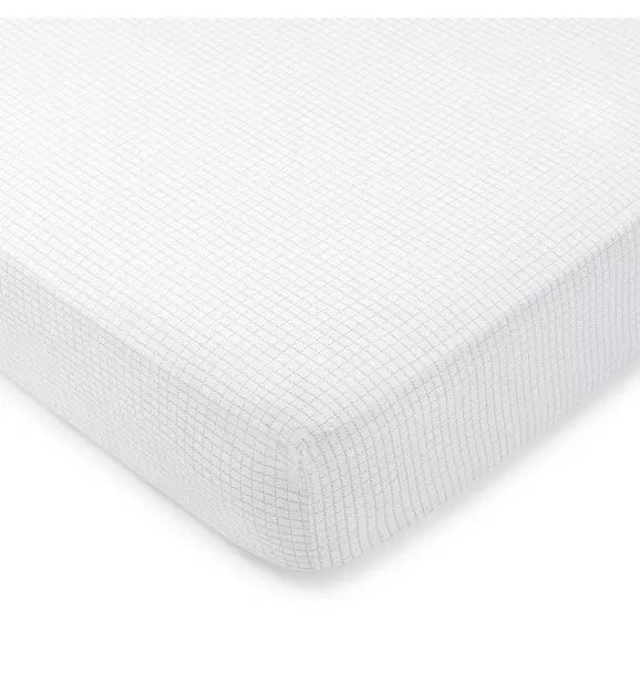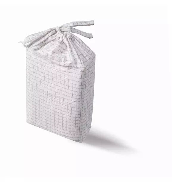 • A classic double grid on a soft cotton sateen, this neutral crib set will match any nursery.