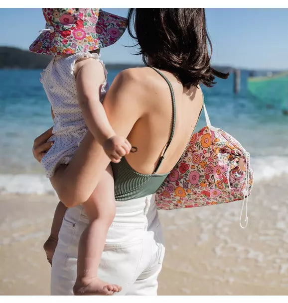 • Got a little one who won't sit still? Maybe it's because... they're sitting on the wrong seat! Introducing the ultimate, most comfortable baby chair now available in the US: the IZIMINI portable booster seat. With over 1,500 5-stars reviews, our iconic baby chair is loved by 60,000 families in Australia and the US. Whether you're strolling along the boardwalk in California, exploring Central Park in New York, or simply relaxing in your own backyard, you won't find a chair for your little one that's as stylish, cozy, and practical as the IZIMINI Baby Chair. This adorable seat isn't limited to the beach - it's perfect for picnics, camping trips, family gatherings, or whenever you don't have a high chair as it can be used as a booster seat on a dining chair thanks to the straps included in the matching carry bag. Showcases a stunning floral design by acclaimed Sydney-based artist Sara Riley.