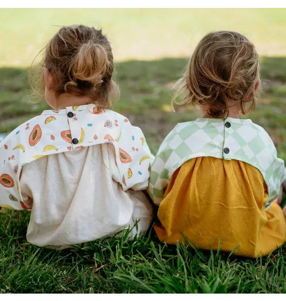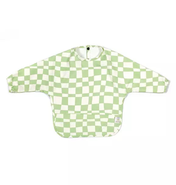 • Our bib has been crafted to address the needs of the messiest eaters! This colorful bib with long sleeves provides more coverage than traditional bibs. The elastics prevent food spillage into the sleeves, while a pocket catches all those inevitable crumbs, sparing your floor from the aftermath. Elevate your child's dining and creative experiences with our joyful bibs!