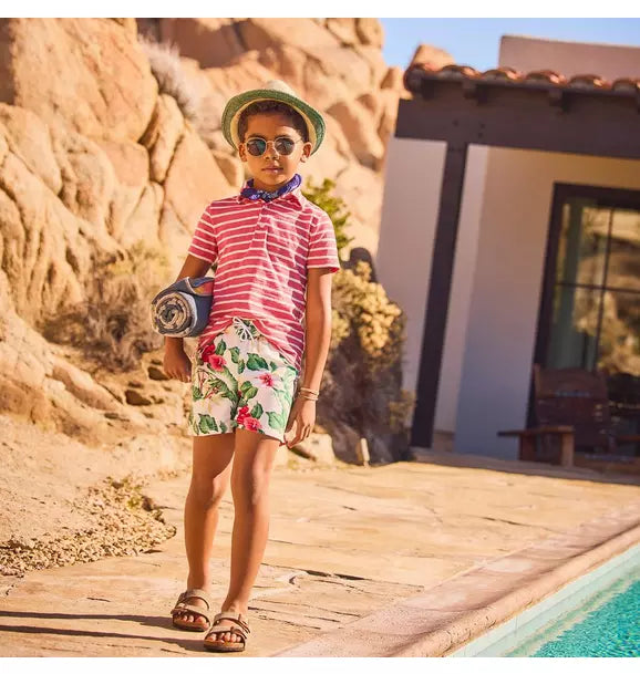• Make a splash on every vacation in our tropical floral swim trunk. With UPF 50+ sun protection, a touch-close back pocket and embroidered eyelets to let water drain out. Responsibly made with recycled fabric.