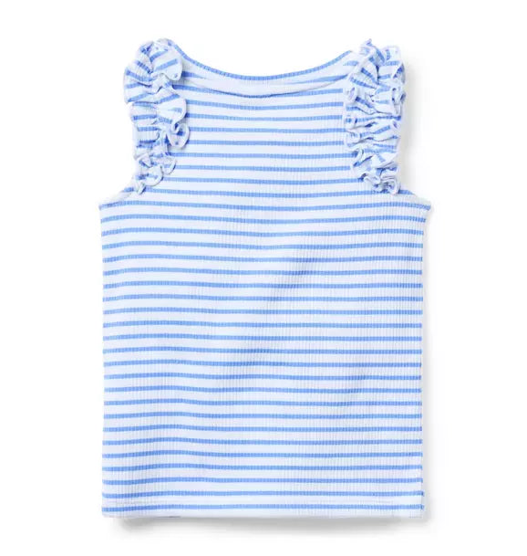 • A wardrobe must-have designed in soft ribbed cotton. Featuring allover stripes and ruffle sleeves for extra frills.