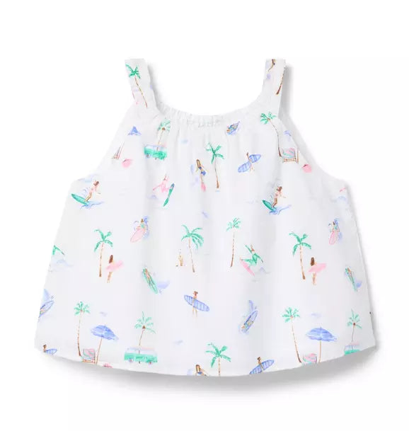 • Hang ten in our halter neck top with an allover surfer print. In an A-line silhouette, it's perfect to pair with all their favorites.