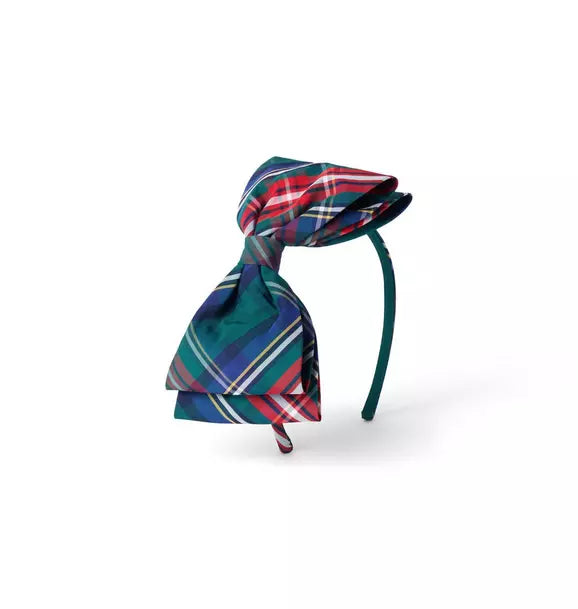 • Top off their look with our festive tartan bow headband. It keeps hair stylishly in place.