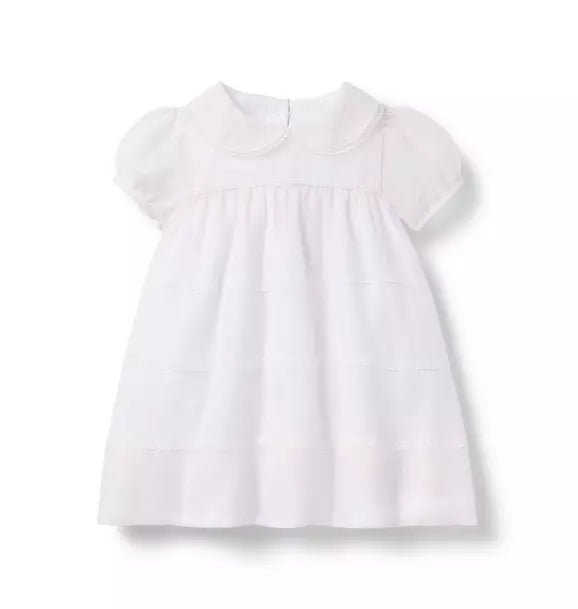 • Baby's first occasions are extra special with our party dress in flouncy organza. Featuring a Peter Pan collar, lace trim and puff sleeves. Finished with a bow at the back, of course.