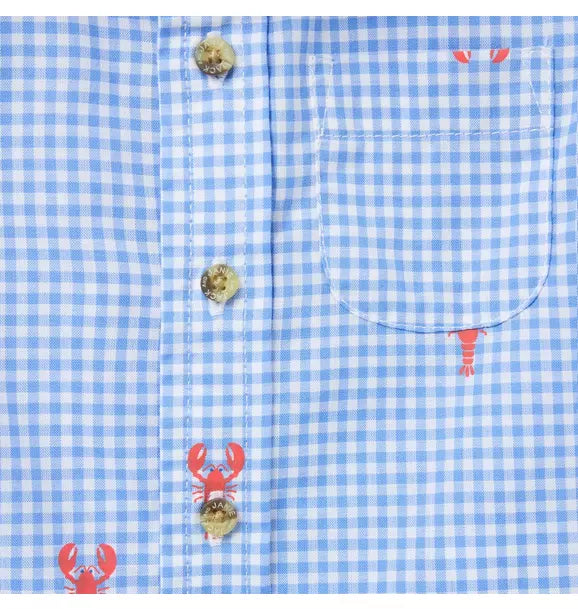 • By land or by sea, our cotton short set is the perfect match for sunny first moments. In allover gingham with lobster details and a little chest pocket, just because.