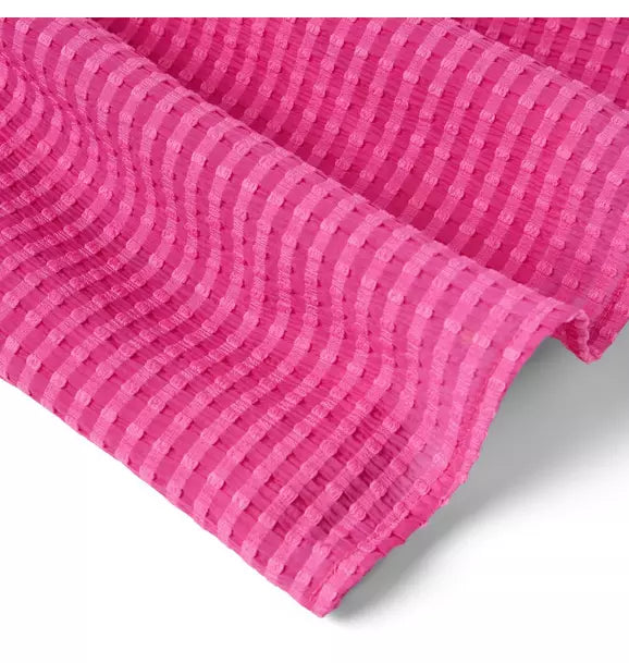 • Pretty in pink and perfect for sunny celebrations. Take our organza seersucker dress for a spin, designed with allover stripes and crossback straps.