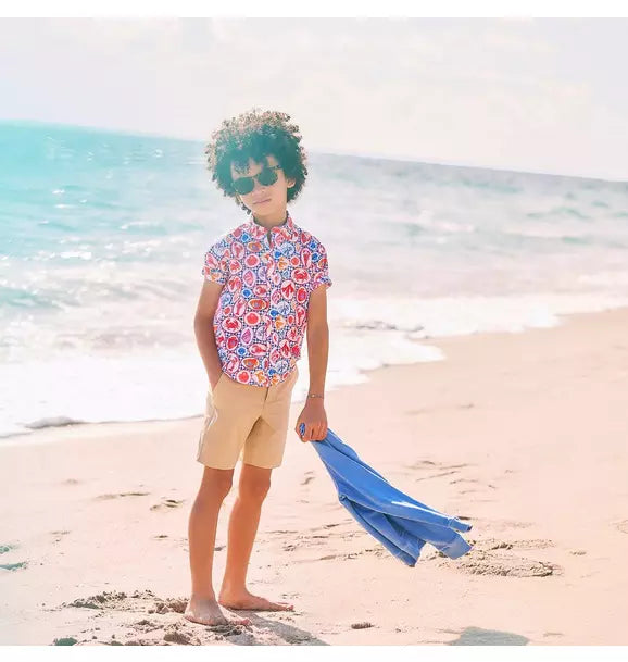 • By land or by sea, our crisp poplin shirt is the way to go. With a ocean icon print and tailored details to love.
