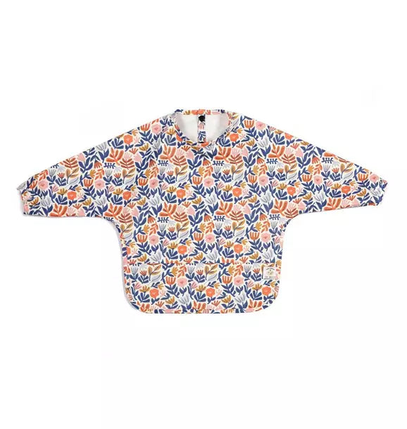 • Our bib has been crafted to address the needs of the messiest eaters! This colorful bib with long sleeves provides more coverage than traditional bibs. The elastics prevent food spillage into the sleeves, while a pocket catches all those inevitable crumbs, sparing your floor from the aftermath. Elevate your child's dining and creative experiences with our joyful bibs!